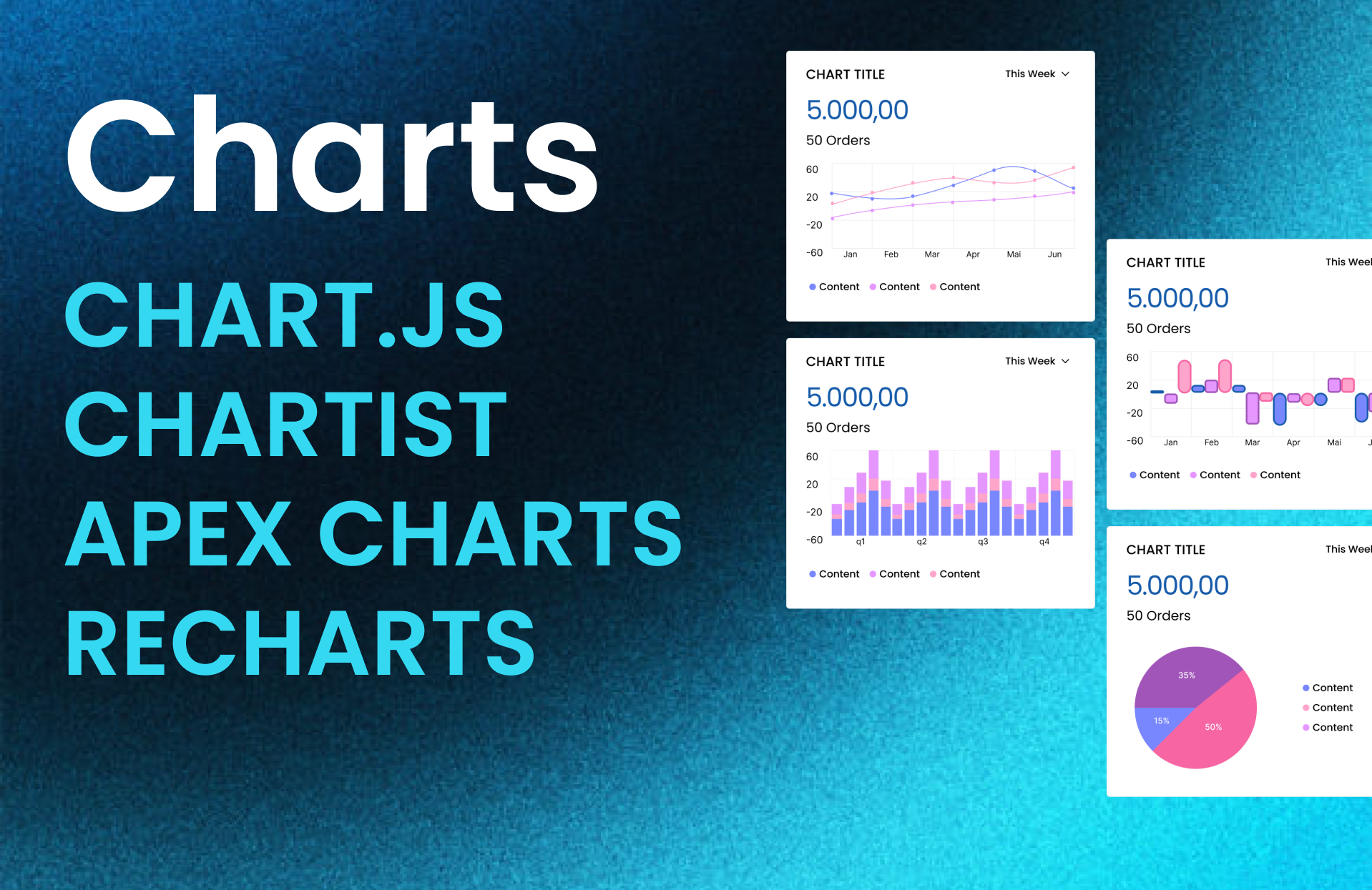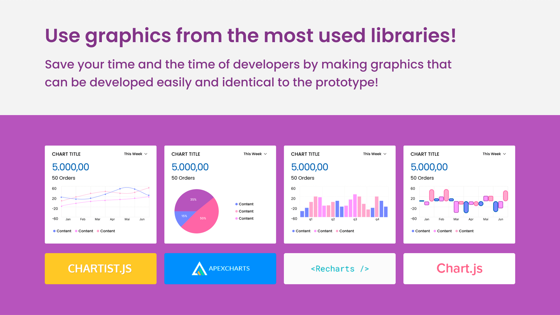 从Chartis,Chartist-js,Recharts或Apex图表中选择模板,作为世界上最常用的图表库。